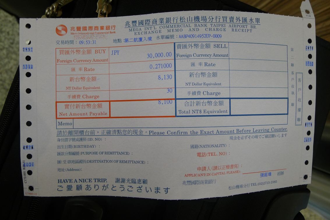 到着日、日曜日なので、空港で少し両替する。レートがすこぶる悪い。