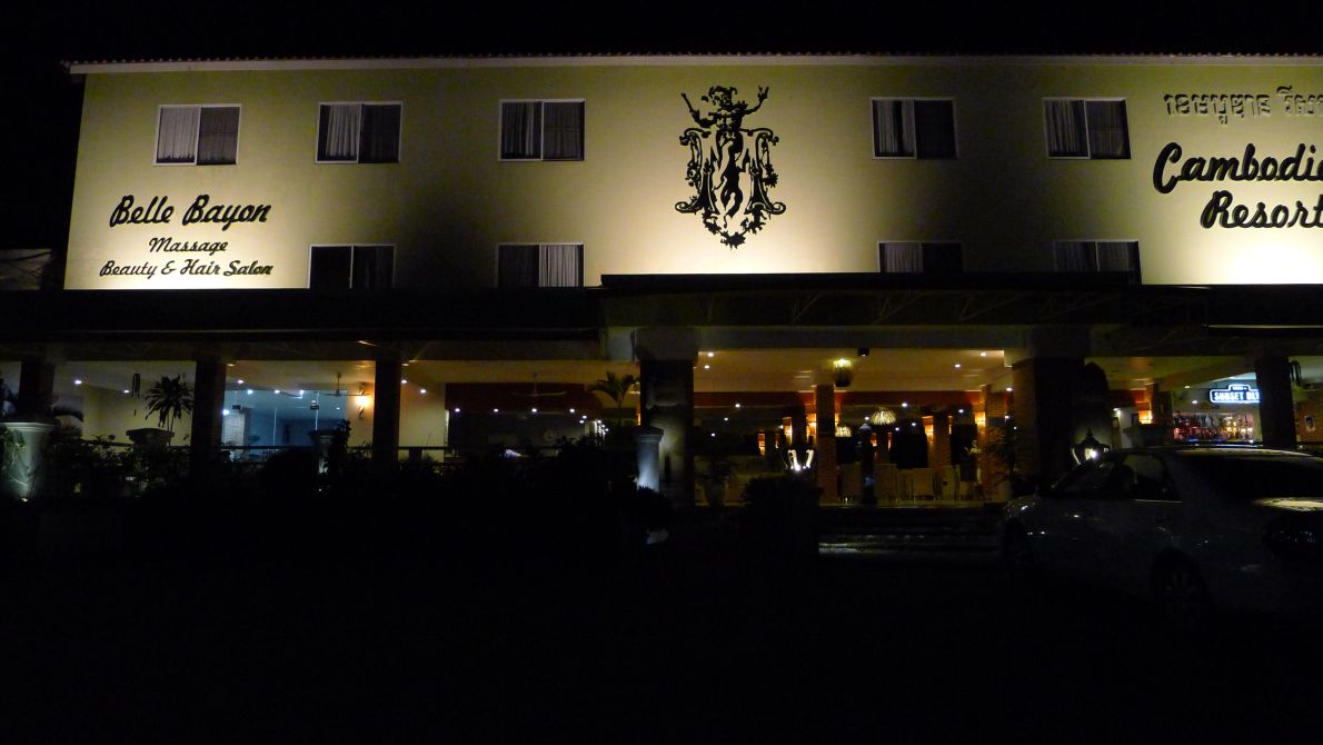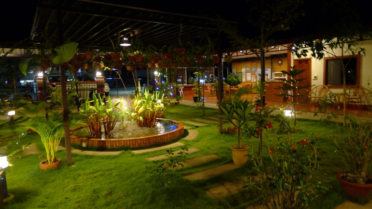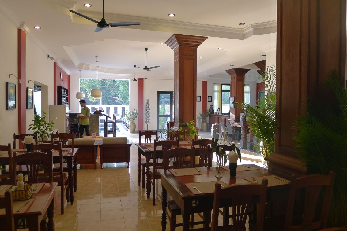 ホテルの一階にあるレストランで皆、食事をしている様子。