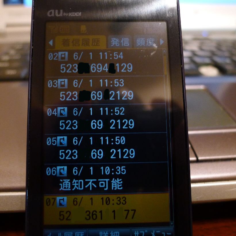 携帯をみると『通知不可能』となっている。