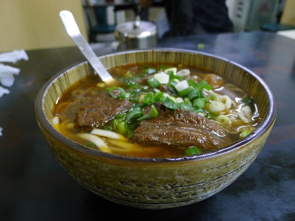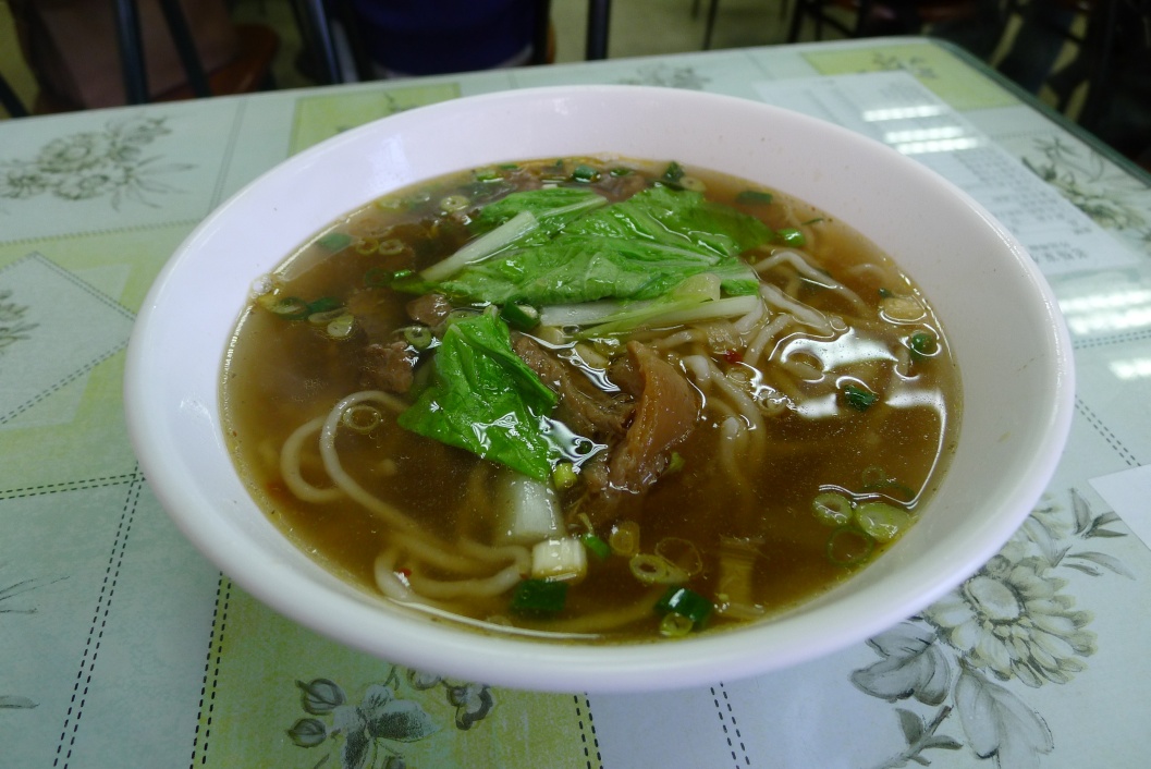牛肉麺のスープは『紅燒』と『清燉』があります。紅燒は、スープの色が濃く、味も濃いです。しょう油ベースで少し辛味があるように思います。清燉は、紅燒よりあっさりした味で、スープの色も薄めです。基本的には塩味です。半筋半肉はすじ肉と正肉の煮込んだ物が半分ずつ入っているものです。私はこれがいちばん好き。