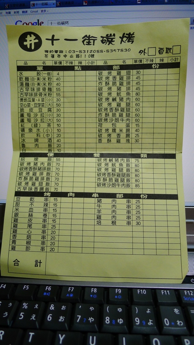 尚、夜市などでメニューが四種類程度しかない所などは、注文票なんてないことも多いです。なので夜市に行かれるときは、メモ紙を用意し、遠目で店頭に書かれているメニューを確認し、紙に書いて渡せば良いと思います。