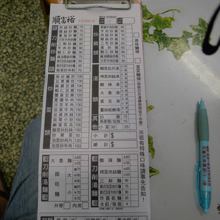 『小吃店』には、たいてい注文票が置かれています。厨房が店頭にあるような店では、そのカウンターに、厨房が店内にあるところは、店先のレジカウンター、或いは各テーブルに置かれています。注文票が自分のテーブルに無いときなどは、他のテーブルを探してみてください。