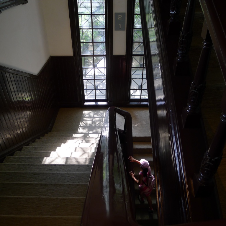 階段を下りて上ります。