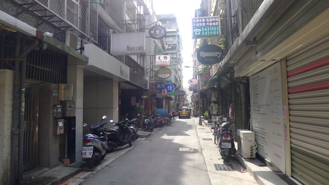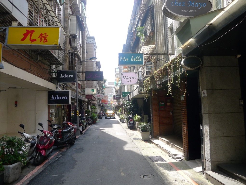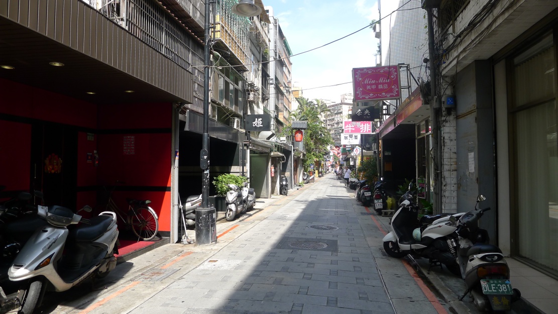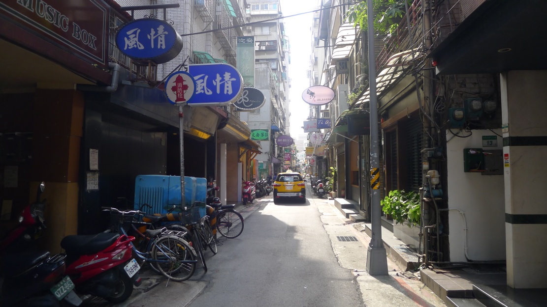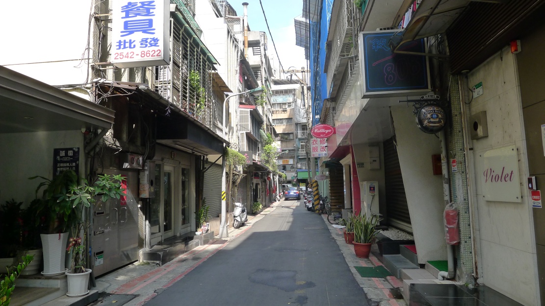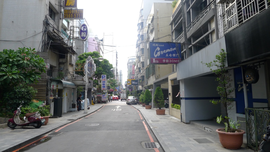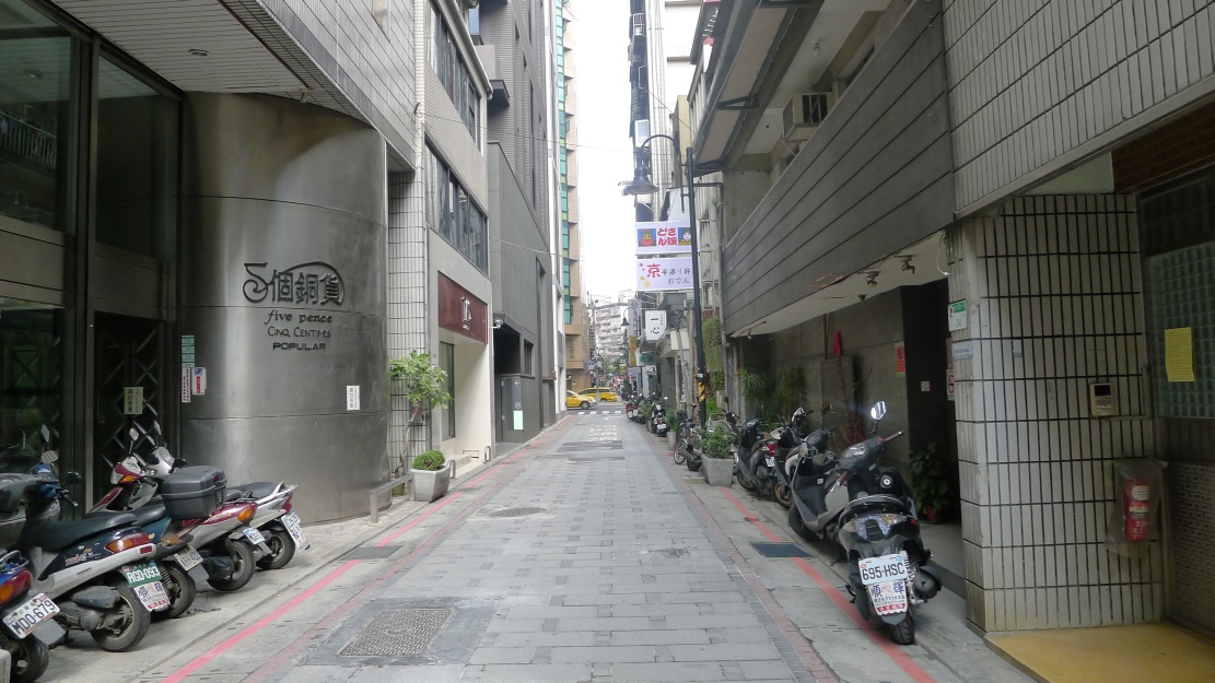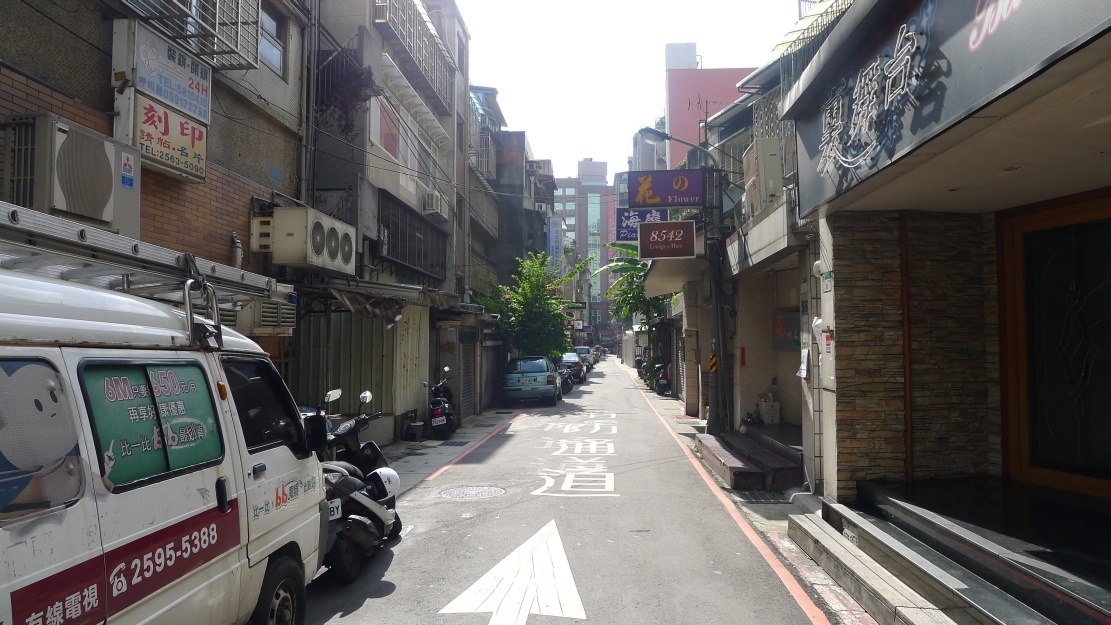 林森北路①、林森北路②、林森北路③、林森北路④と林森北路の東側西側を紹介してきた今回の企画。最後は南京東路一段から長安東路一段まで抜ける”縦の路”を紹介します。この通りはストリートビューで見ることが出来ますが、私が撮影してきた様子と若干違います。(このページの写真は2011/08/05撮影)