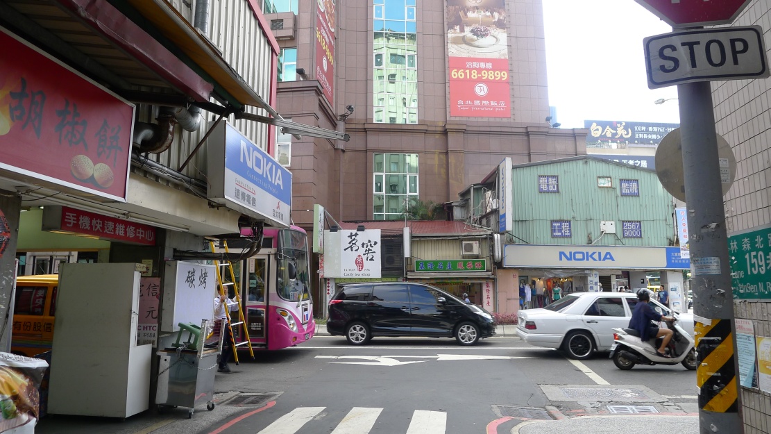 やっと林森北路です。向こう側に『龍都酒樓』がみえます。