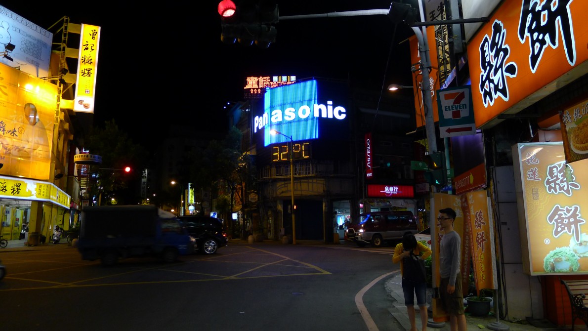 午後七時頃、隣人に気づかれないように、そっとドアを開ける。廊下が真っ暗だ。今日は金曜日、学生達は夜市に行った様子。安心して、階段を下りる。中華路と花蓮市中山路との交差点にパナソニックの看板がある。そこに時間と気温が表示されるのだが三二度となっていた。いつもの『十一街碳烤』で食事。暑すぎだ、何もする気にならない。