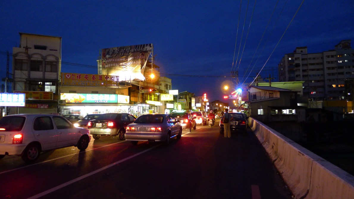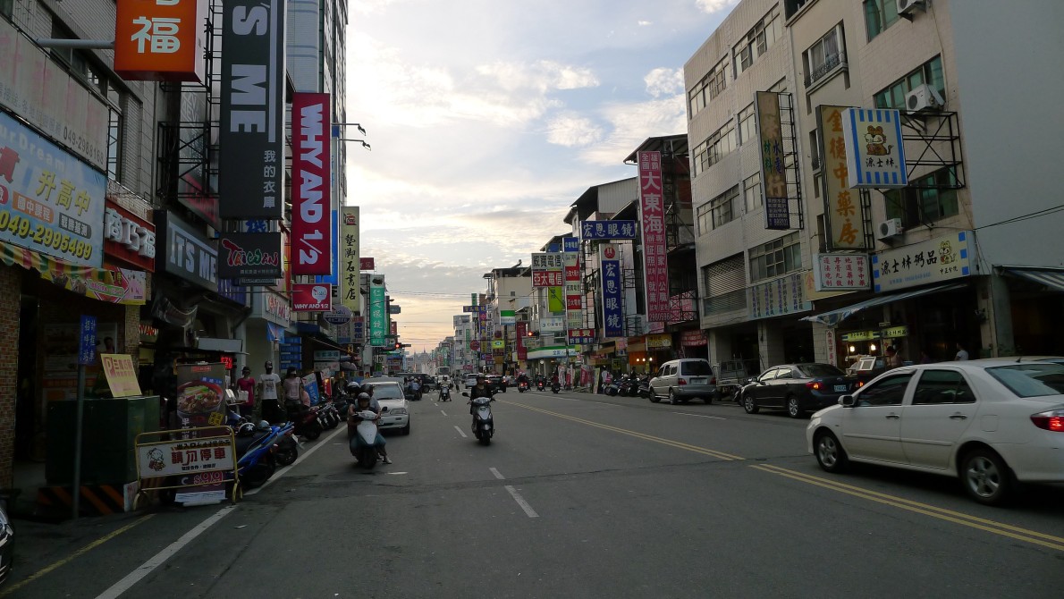 去年、列車で一周した時も感じたのだが、台湾西部は空の色がグレーであるということ。曇りの日しか訪れていないのかもしれない。空がグレーだと写真も、なんとなくパッとしない。ビルの色、アスファルトの路面、コンクリート、車、バイク、どれも黒、グレー、白といった同じような色ばかりが目立つ。