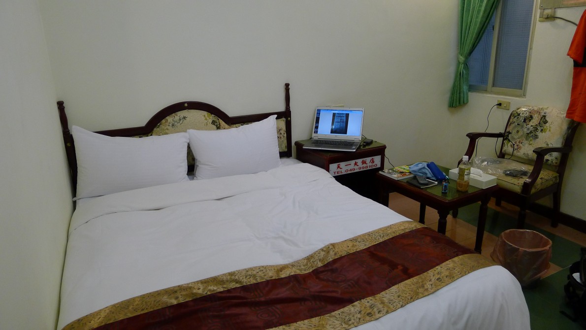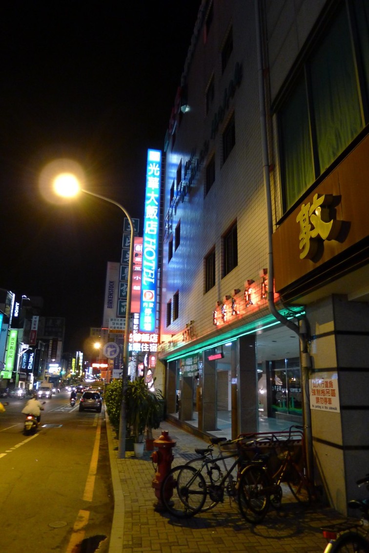 Uターンするにも道が大きいし、停車するにもバイクの量が半端ではないので、思うように停まれない。高雄のホテル固興大飯店に午後三時半にチェックイン。一晩五九九元。部屋番号は忘れたが五階だった。中は薄暗く、無線LANもすぐ途切れる。値段なりの部屋だ。広さ、設備は寝るには充分なので、そうした使い方なら不満はないだろう。
