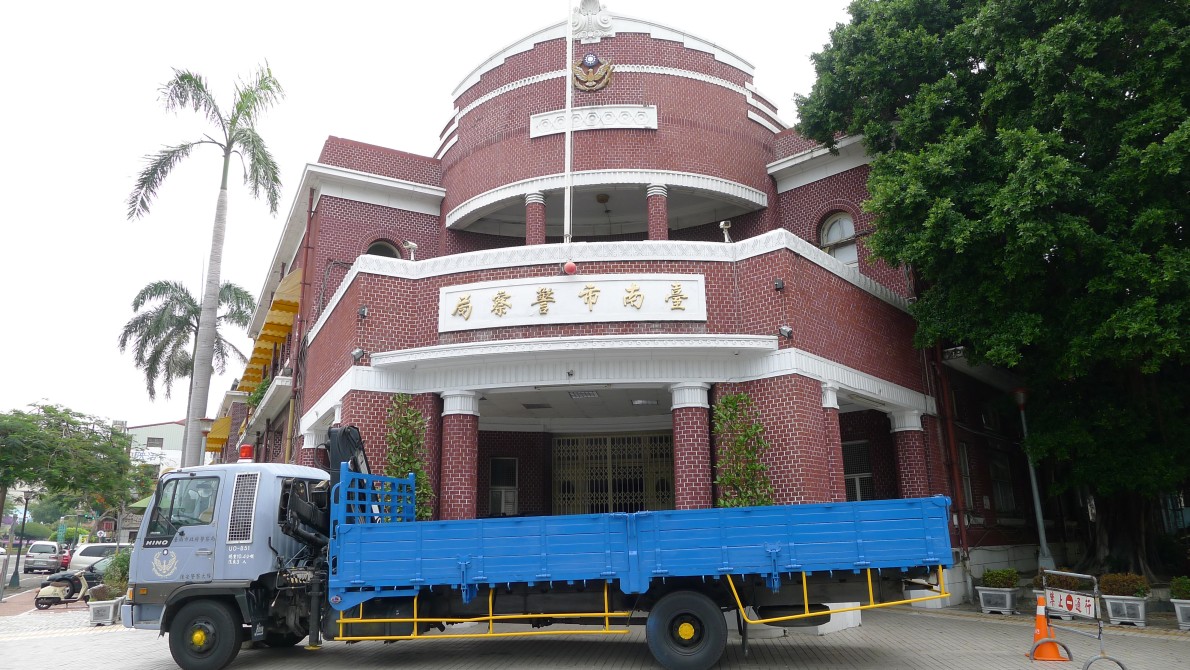 台南市警察局。なんでこんなところにトラック停まっているの??