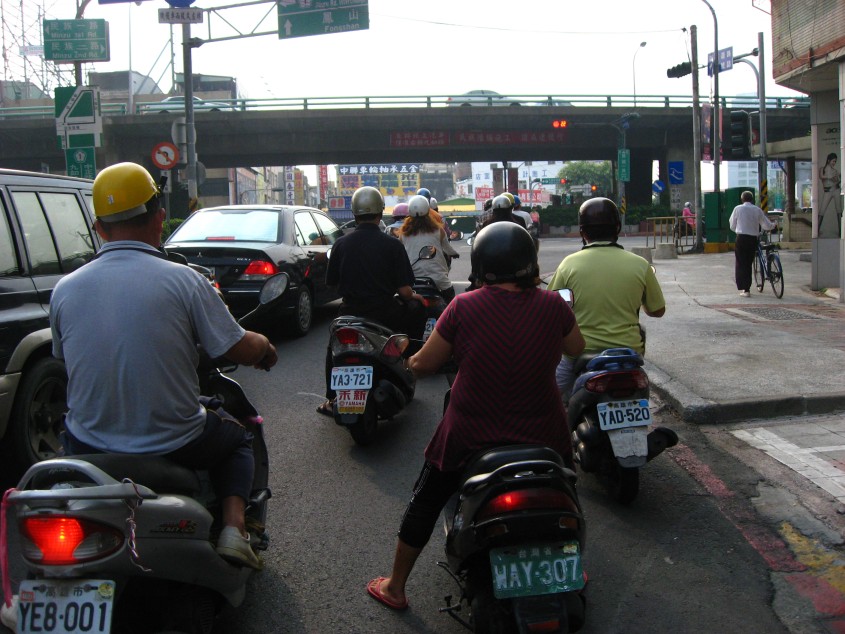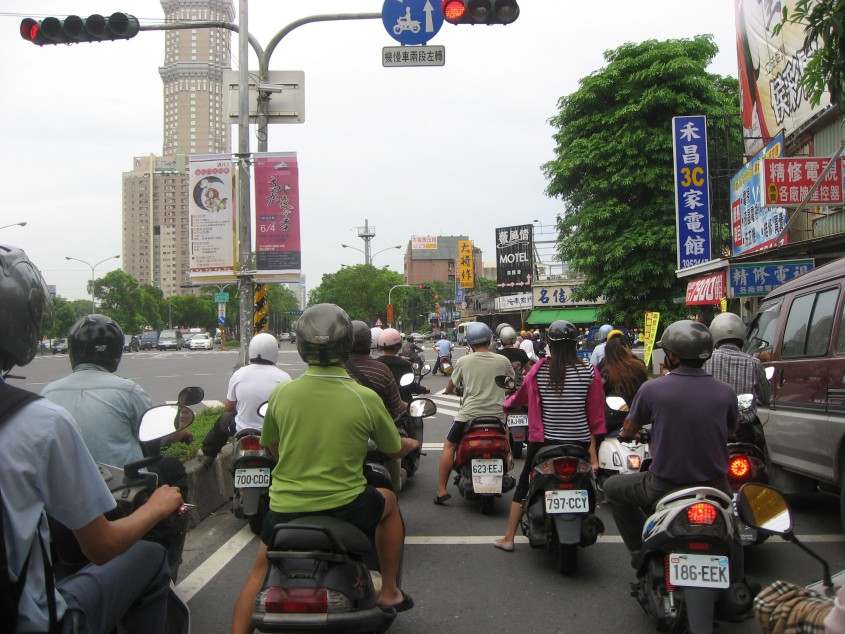 台南は信号なんかあってないようなもの。(高雄はもっと凄まじかった)スクーターは赤信号でも、右折は当然、左折も平然と二段階左折してしまうし、直進も様子を見ながら敢行してしまう有様。まじめに停車しているのが馬鹿らしくなる。T字路は信号が無いに等しい。偶にゆっくり走っているスクーターを見かけると、携帯で話しながらである。台湾の免許制度がどうなっているのか知らないが、交差点に警官が一人立っていて違反者を捕まえていれば、一日かなり“稼げる”と思う。とっとと免許を取り消して、再試験をさせればいい。その再試験費用だって儲かる。とにかく、まじめに走っている方が危険なのはおかしい。ここでは暴走運転することを強いられる。スクーターの団子の中にいる方が危険なのだ。グーグルマップのストリートビューがこの辺りは表示されない。もしかしたら危険すぎて撮影できないのかもしれない。