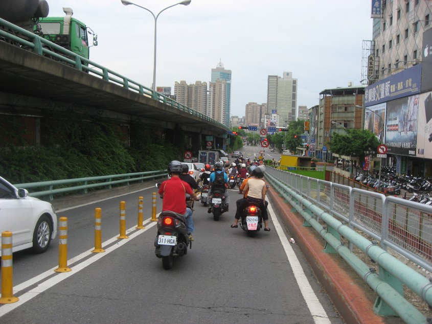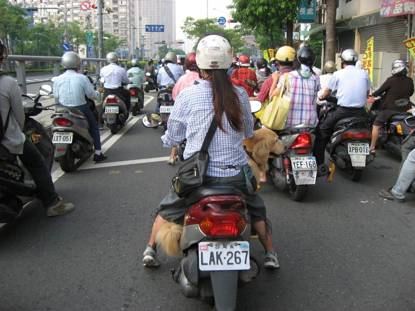 ホテルを出た時間が、丁度、朝の通勤ラッシュだったようだ。バイク、車、自転車が道路を埋め尽くしている。車が走る道とバイクの走る道が植木によって区切られている。赤信号で停車しているバイクが、信号が青になった途端、吸い込まれるようにそこに集中する。そのバイク道に右から飛び出してくる人、車、バイク。時にはバイク道を車が走っている。途中の道を右折するためだ。殆どの運転者が車間距離はとらない。誰かが急ブレーキをかけたら、必ず玉突きになると思う。台北の交通事情はこれよりも、もっと酷いのだろうか?
