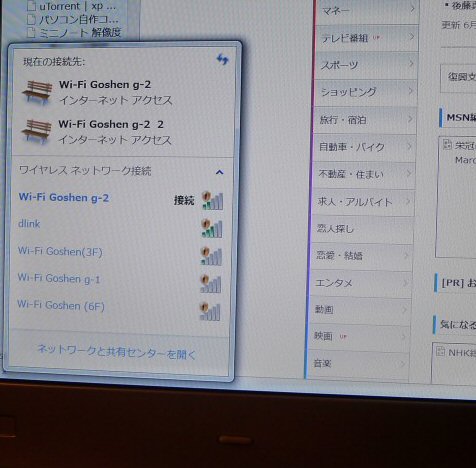 無線LANの電波状態。dlinkというアクセスポイントは