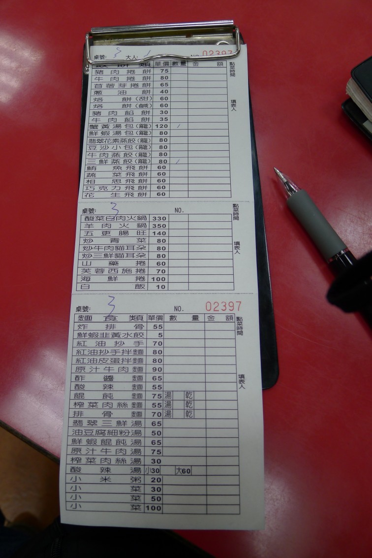 腹が減ってきた。ビルの裏側、自強三路を北進むと店が両脇にずらりと並んでいた。客が多くいる店を探す。『厚得福餐館』に入店。メニューの種類は豊富。何がお薦めなのか解らないし、量も解らない。残ったら持って帰ればいいだろうと三鮮蒸餃80元、蟹黃湯包120元、餛飩麵75元を注文。量が多い。きっと大人数で来ると安く済むのだろう。味は普通。蒸餃も湯包も皮が美味くない。やはり『戴記扁食』の皮がおいしい。