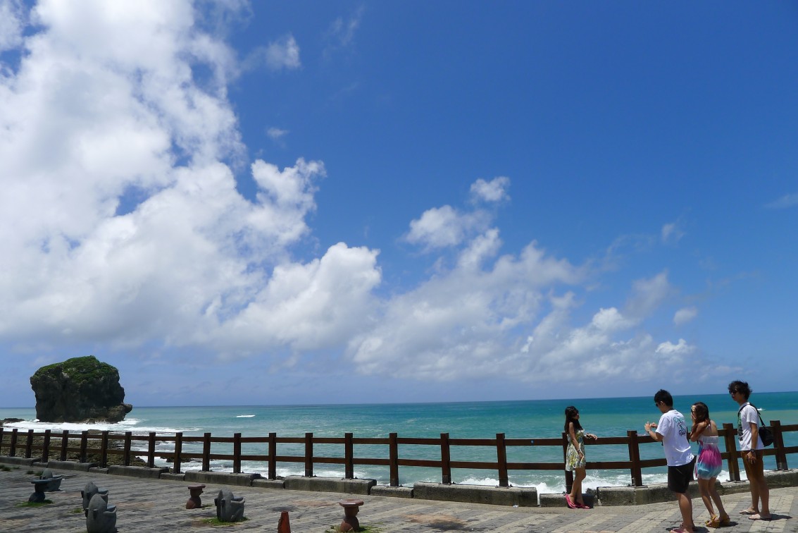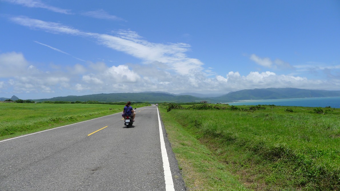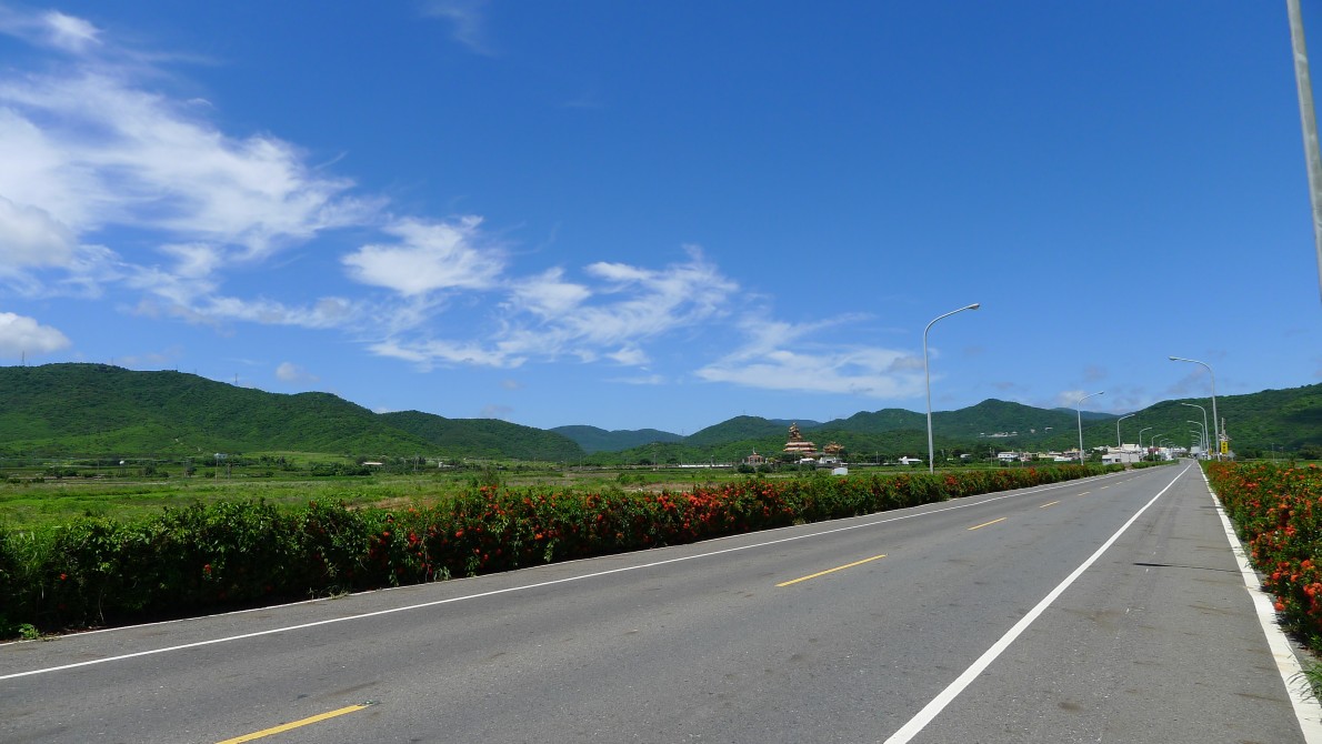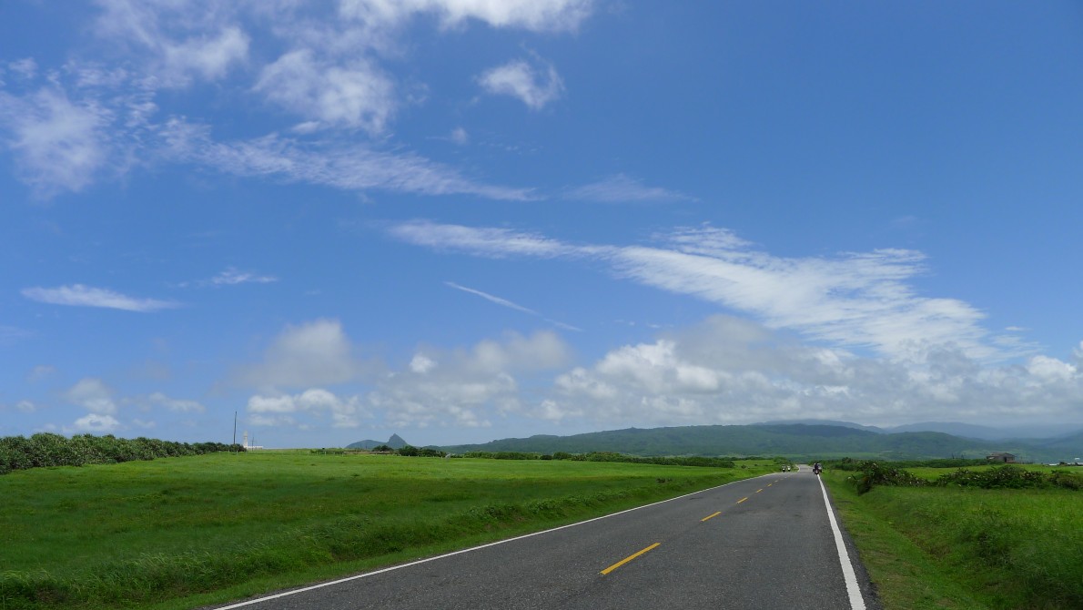 台湾最南端の記念碑を観て、二六号線を北上。坑仔內あたりの景色は実に素晴らしかった。青々とした草と白い雲、真っ青な空と海。まるで絵を見ているようだった。