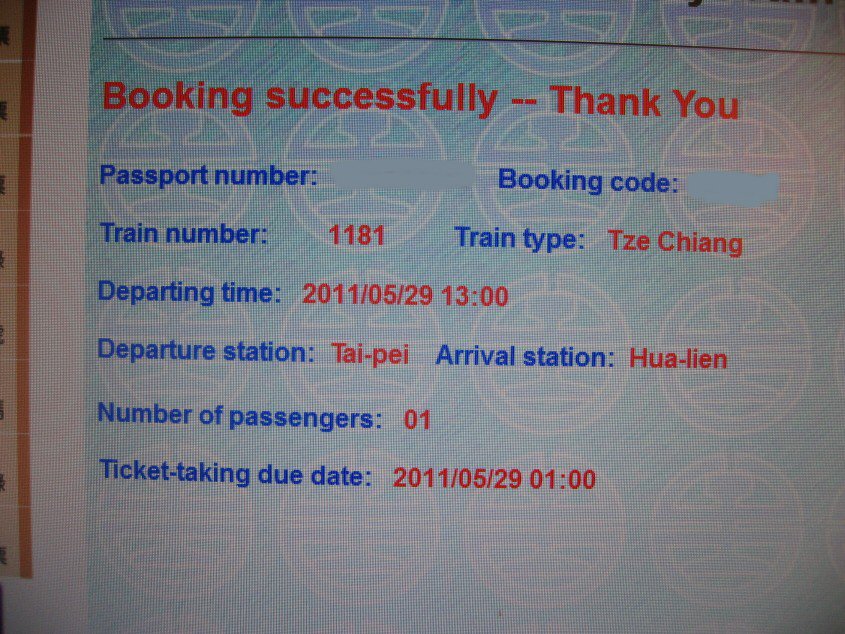 自分の順番がまわってきた。予約番号を言う。すると「何時の何番の列車だ? 」と怒ったように言われる。それを伝えると「パスポートナンバー」と言われて紙をこちらに渡した。国営とは何処もいっしょなのか。購入価格は台北-花蓮、四四〇元。ネットカード決済の方が若干安い。ネットカード決済は台北-花蓮、四一九元(去年)