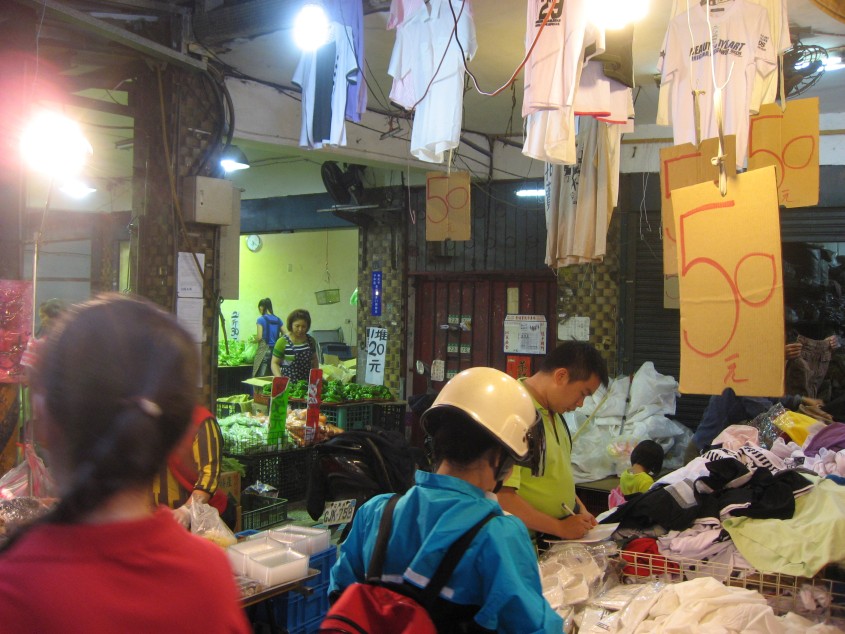景安站を背にして景安路を進むと和平街という通りがある。この道を進むと南勢角站まで続いている。今日は土曜日、それも夕方五時。ここに市場があるのは知っていたのだが、いつも夜遅くに帰ってくるため、これほど活気があるとは思わなかった。