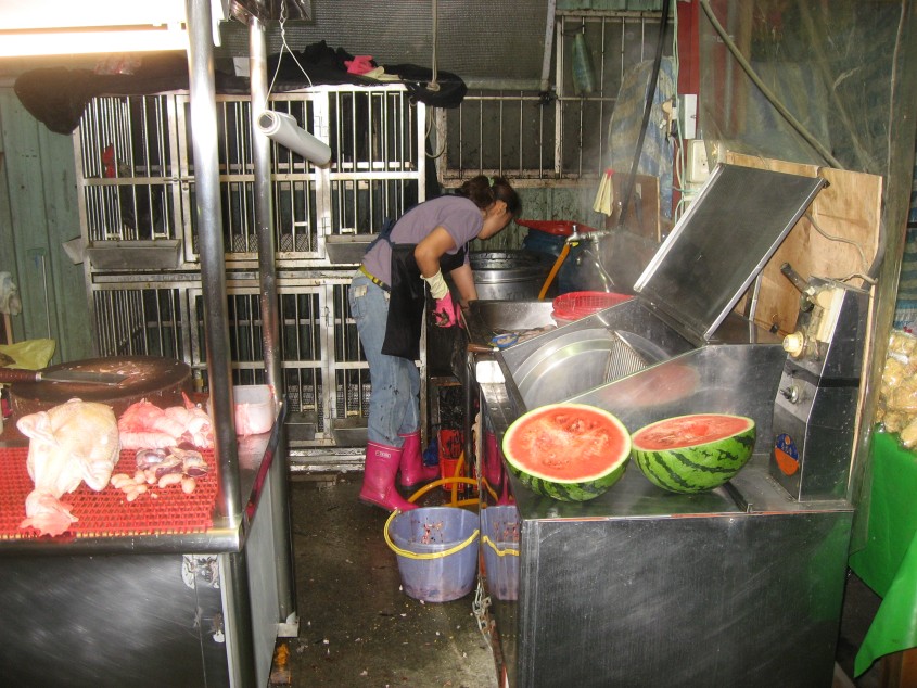 この景安路と交わるところから南勢角站まで五,六〇〇メートル位だと思う。店と商品が隙間無く詰め込まれている感じだ。間の小道にも人、物、バイク、そして犬……。