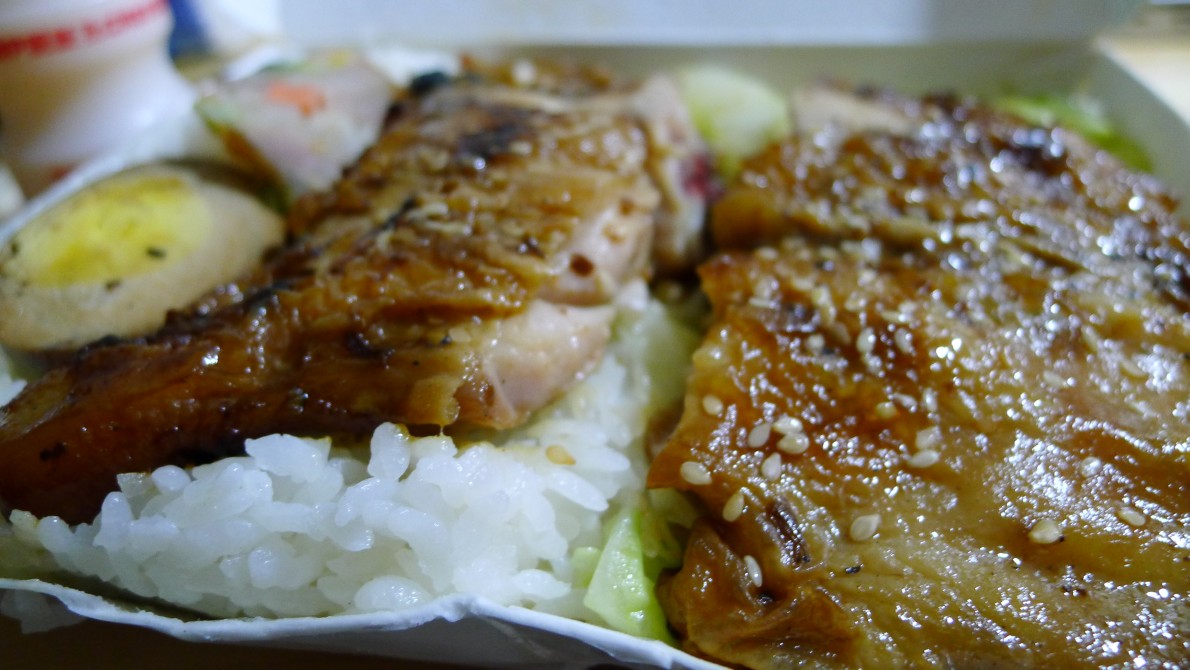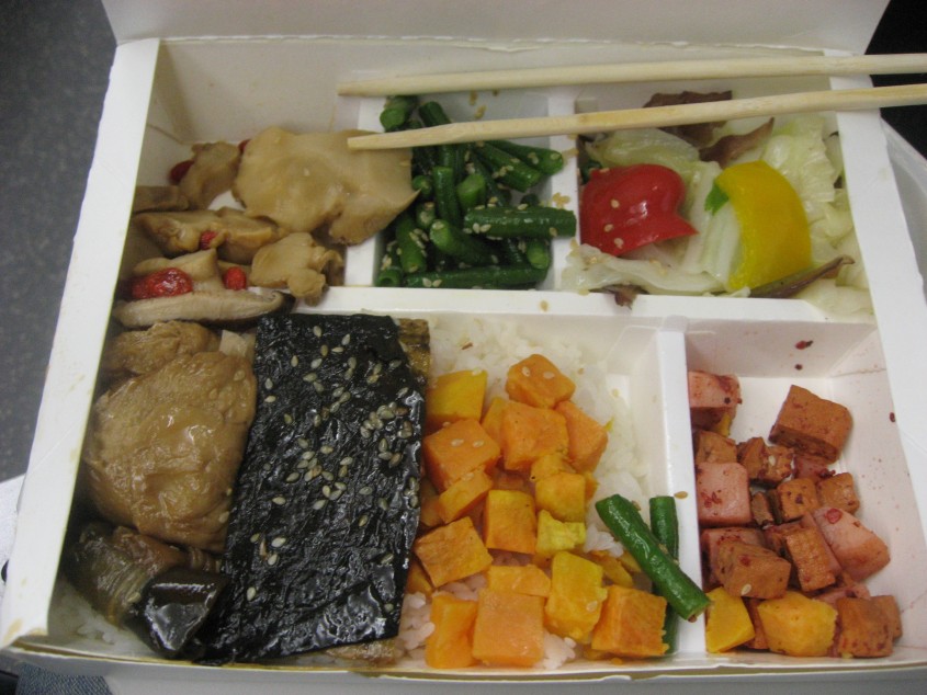 便當を買っていたら時間ぎりぎりになってしまった。素食便當一〇〇元。他に八〇元の物、内容が違うものが幾つかあった。