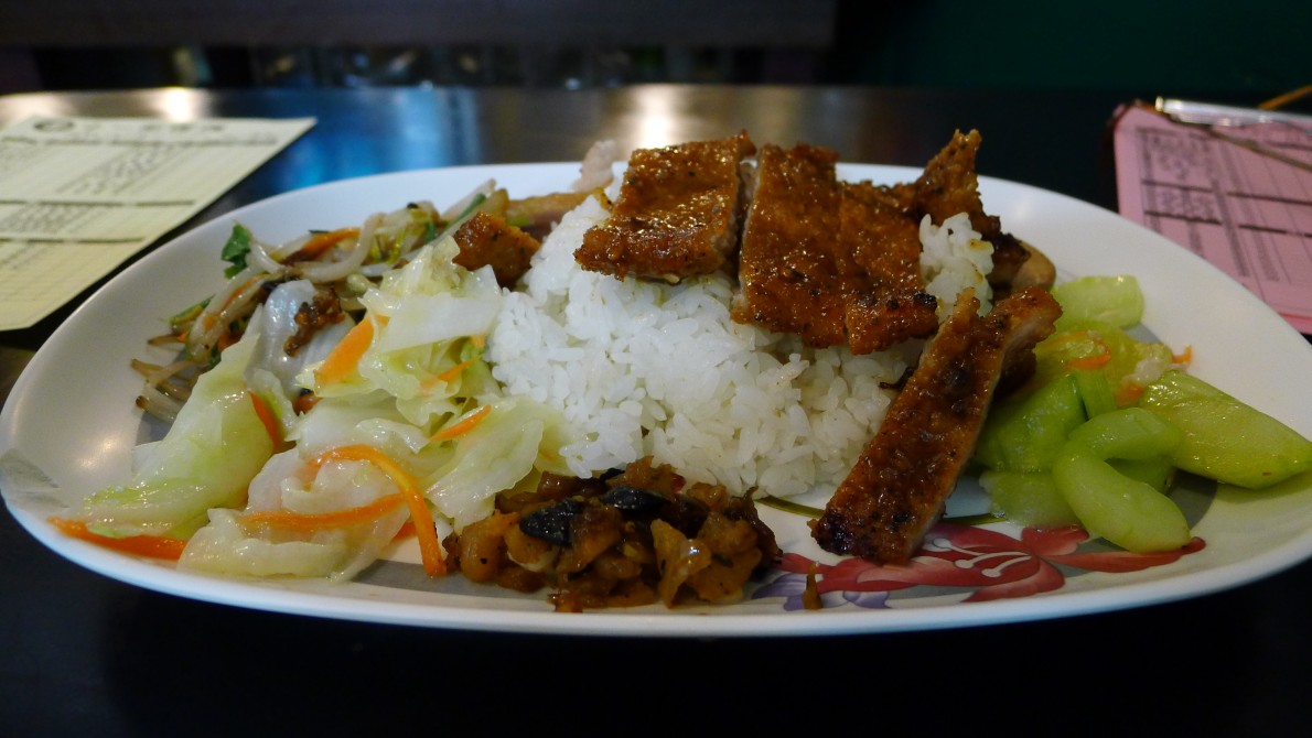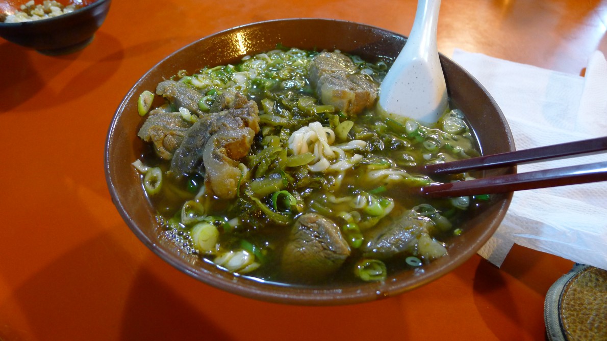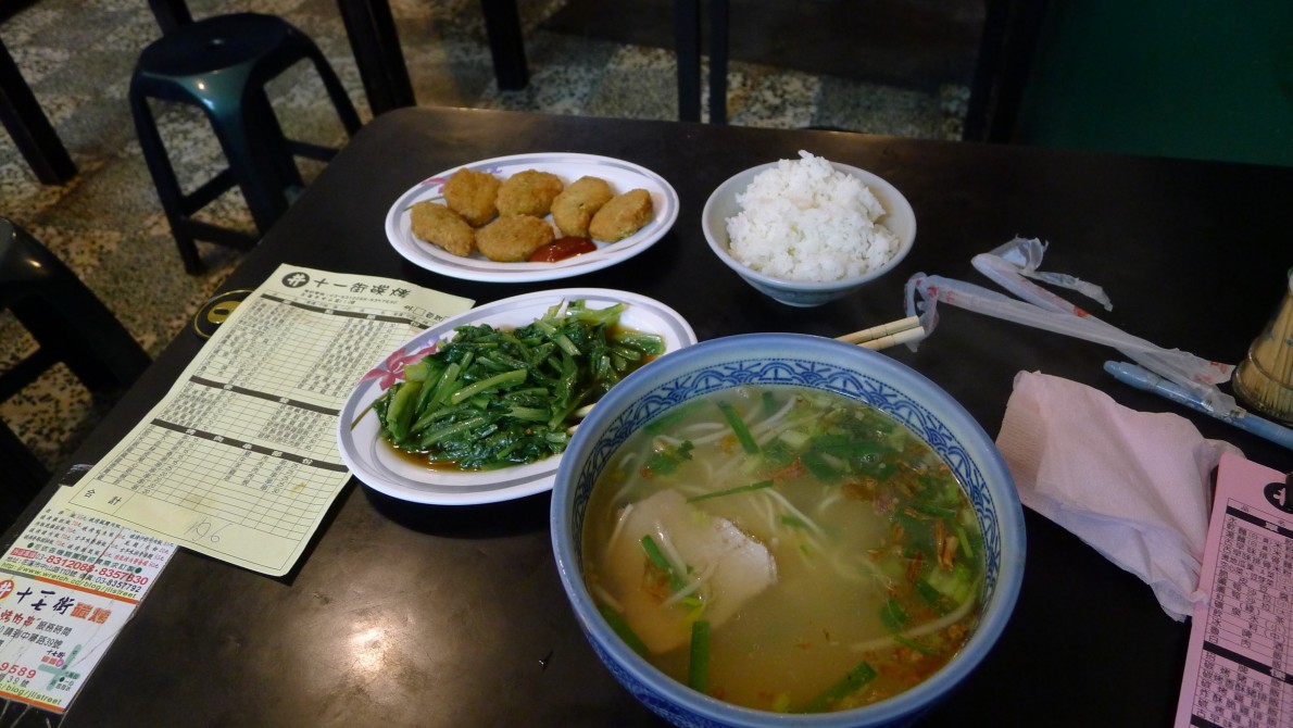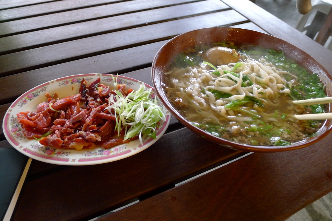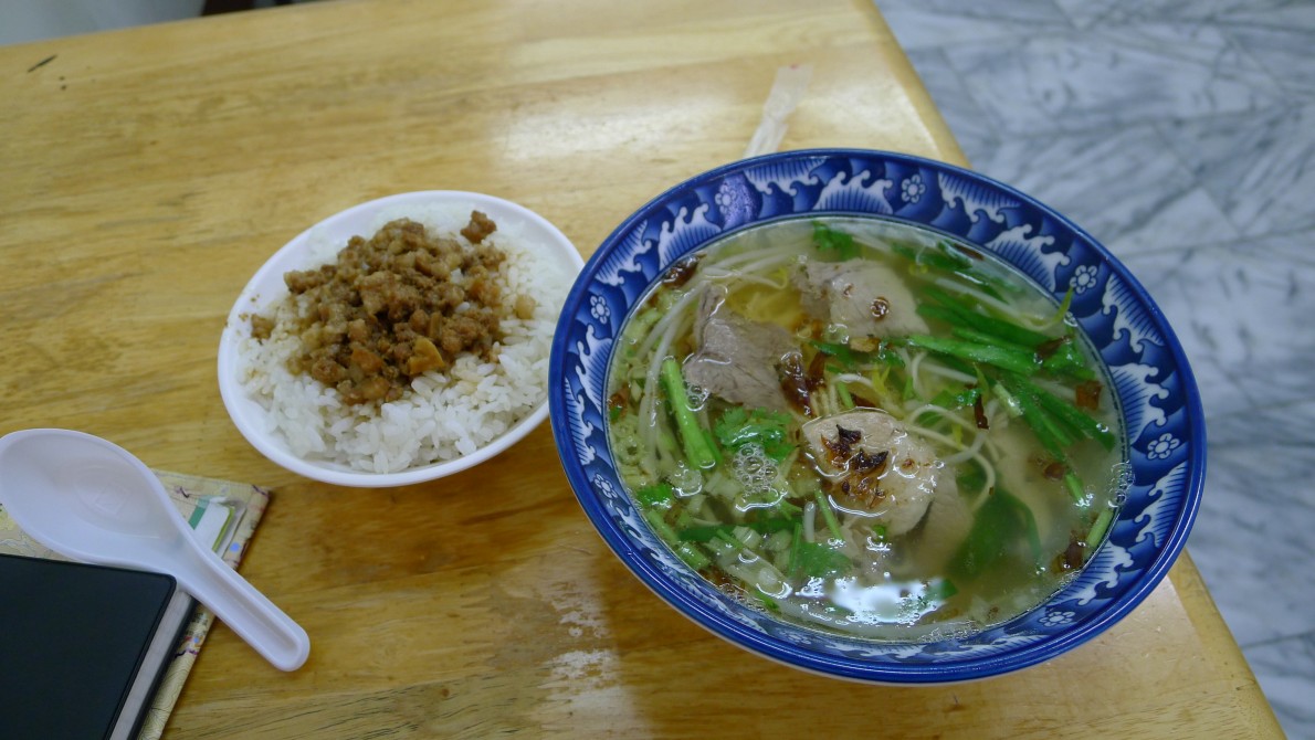 黃昏市場内にあるまた名の解らない店で牛肉麵と魯肉飯を頼んだ。なぜか発音しやすいのと、冒険ができないのとで、どこでも同じ物を頼んでしまう。二つで一〇五元。
