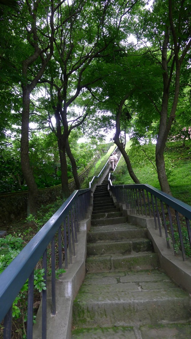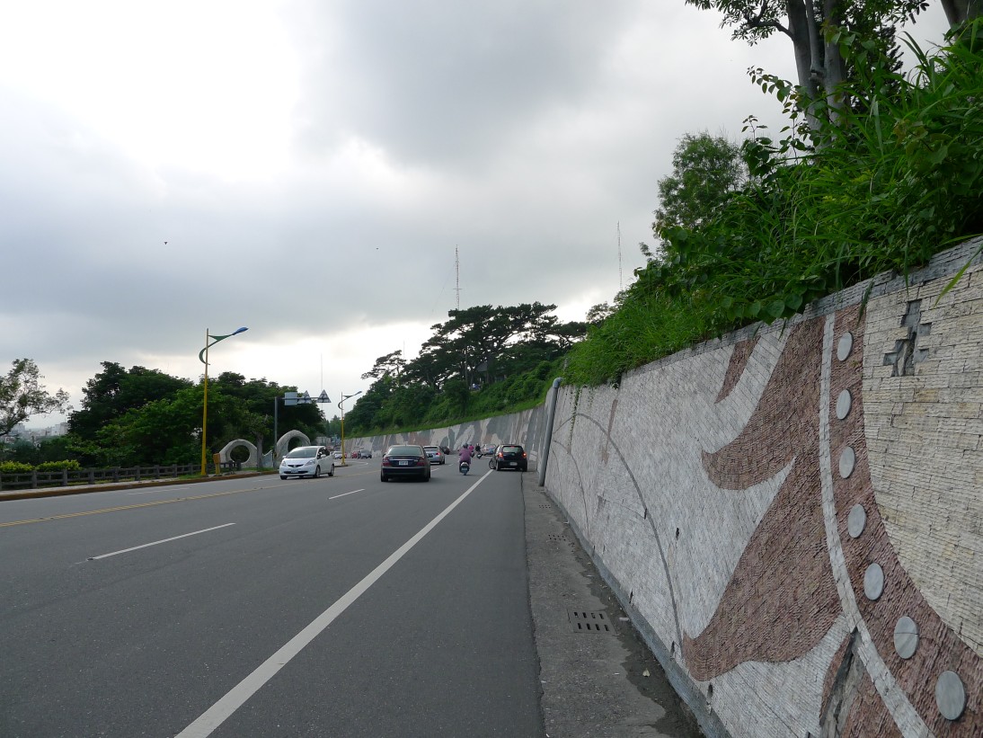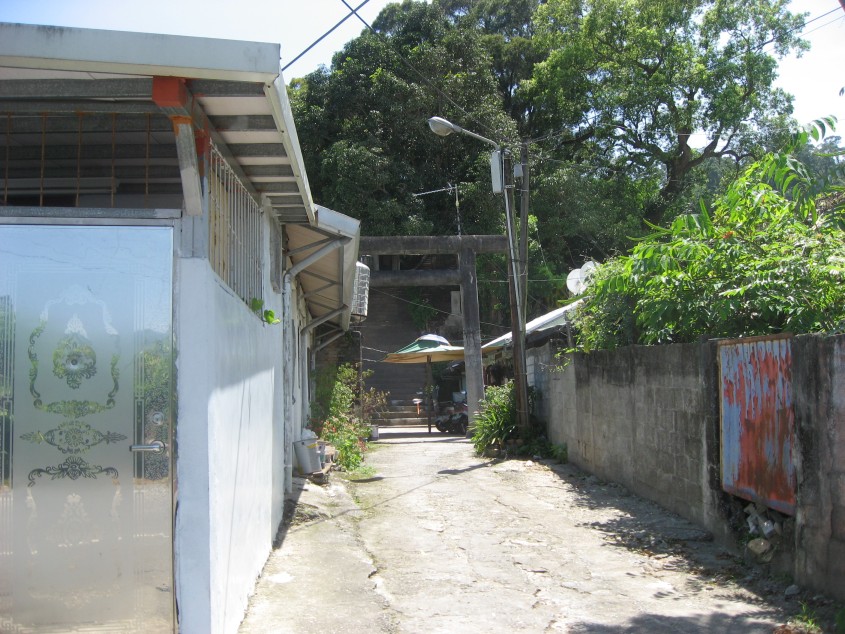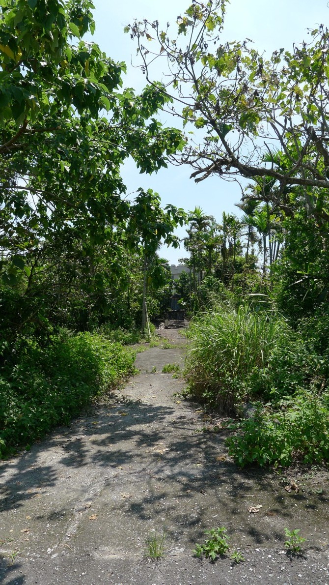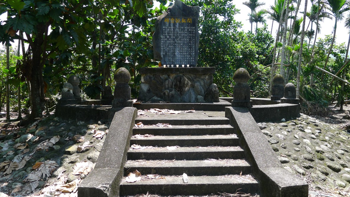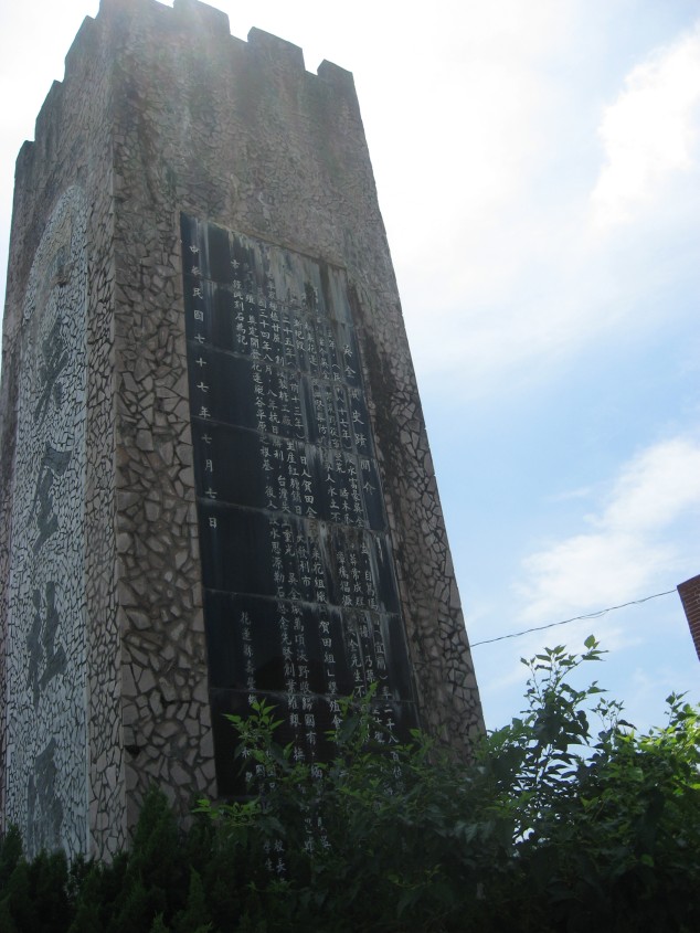 その次は賀田組開拓紀念碑のあるところを目指す。九丙線を元来た道とは反対に進むと九号線にぶつかる。そこを左折。すると一キロほど行ったところに大學路一段があるので右折する(右側に台糖加油站あり)道なりに進むと十一丙線に交わるので(右側にセブンイレブンあり)そこを戻るように右折。そして一つ目の信号(右側に薄いピンク色の建物あり)を左折すれば吳全城遺址がある。