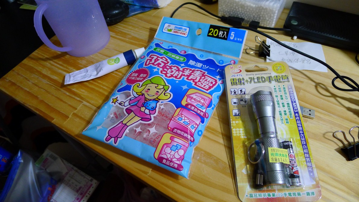 パソコンに向かっているうちに気がついたことが二つ。デスクが折りたたみ式で壁に固定されているのだが、固定の仕方が貧弱で今にも折れそうだということ。ベランダにあった、椅子の座面がちょうど同じ高さだったので、解決。もう一つはデスクが非常に暗いこと。もう一度『199』へ行き、コンセントへ直接つける電球ソケットを購入、スイッチがついている。ほかに延長コード、電球。しめて二九九元。金のかかる部屋だ。木ねじが一本引き出しに入っていたので、事後報告ということで固定させてもらった。十七年前ぐらい、まだバイクに乗っていた頃、常に持ち歩いていたレザーマンが役に立つ。未だペンチを使うと手に食い込んで痛くなってしまう時の代物である。