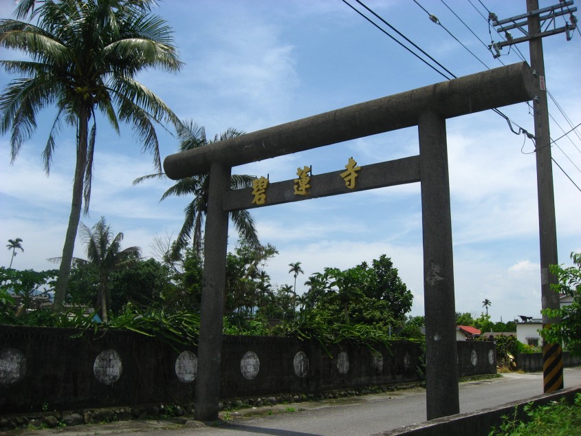 壽豐站のひとつ隣の駅、豐田站に着く。壽豐站から九号線を二,三キロ南下し線路をくぐるように、左折。そして直ぐに左折すると左側に豐田站がある。その駅を背に中山路を進むと民權路にぶつかる、そこを右折。鳥居をくぐってまっすぐ進めば碧蓮寺がある。ここもかつては豊田神社と呼ばれた所だ。灯籠が多く残っていたが、文字は消されていた。雲行きが怪しくなってきたので、先を急ぐ。