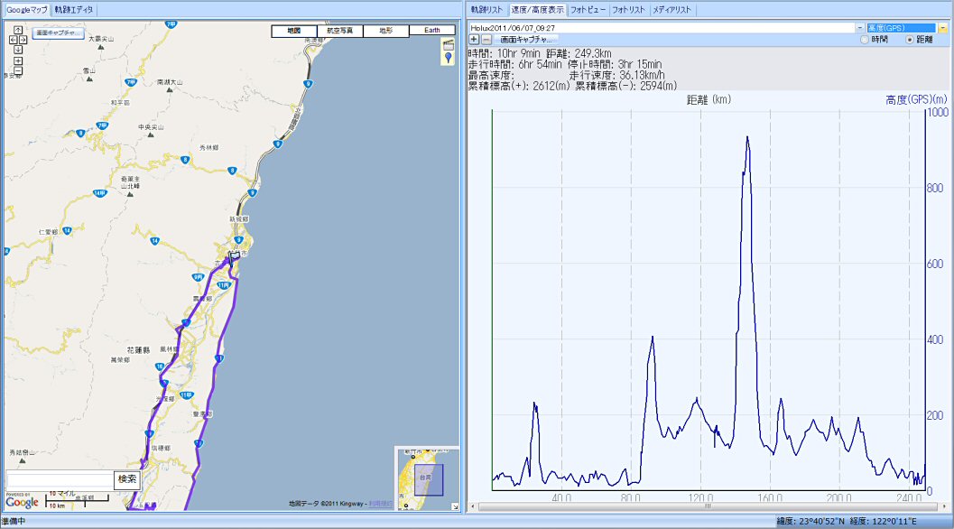 昨日、玉里から戻ってくる時に警察に止められた事を思い出した。詳しい場所は忘れてしまったが、九号線のこの付近だった。何をしていたのかは解らないが、赤い旗を出されて呼び止められた。日本人だと解ると、しきりに日本語の単語で話しかけてきた。免許を見せてくれといわれ、JAFで発行された書類を見せると、