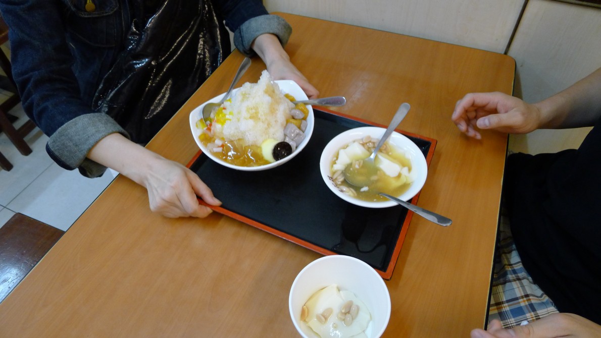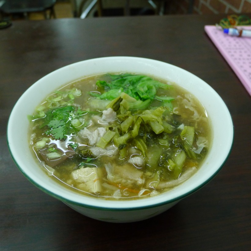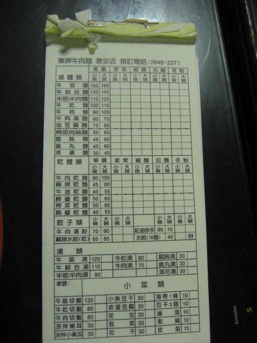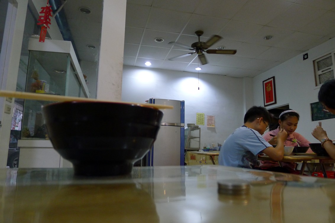 今夜も呷霸牛肉麵へ寄る。昼の餛飩湯麵から何も食べていない。榨菜肉絲麵四五元、火腿蛋炒飯六〇元をそれぞれ頼んだ。おばちゃんに