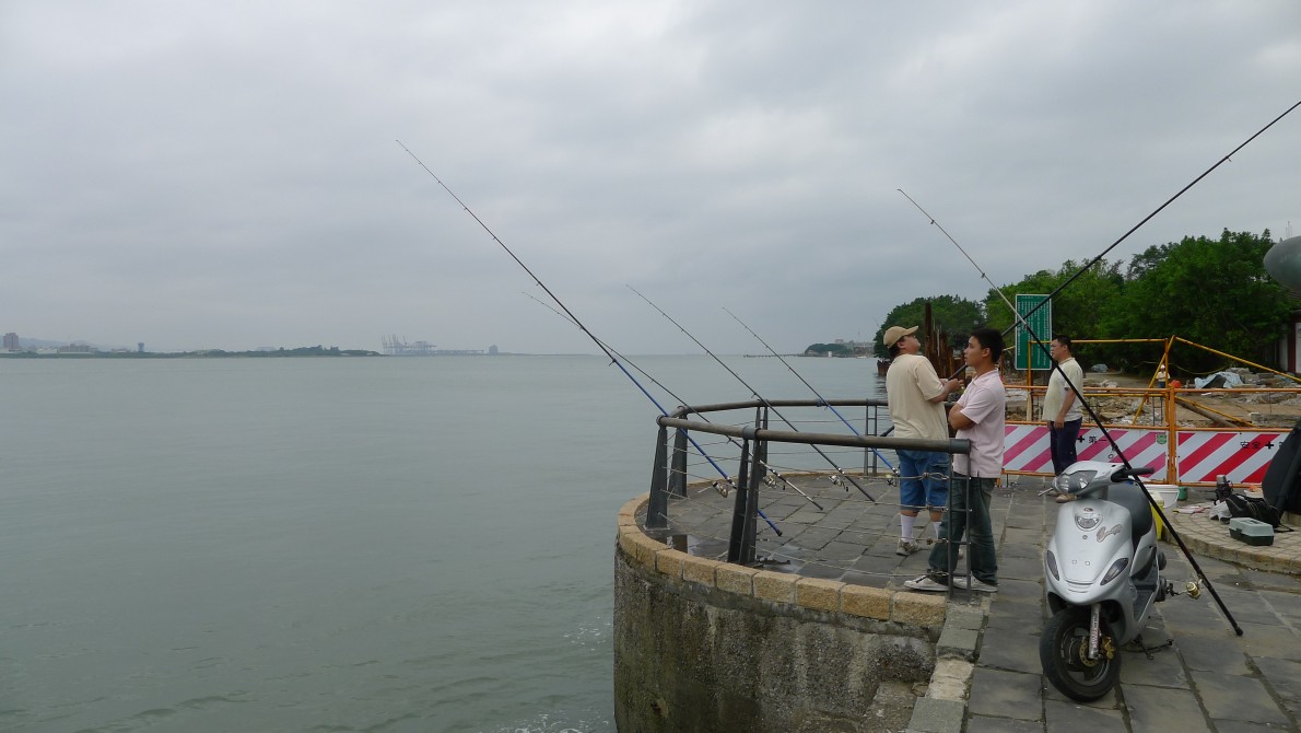 紅毛城を右手に見ながら、そのまま水辺まででた。二、三人釣りをやっている。